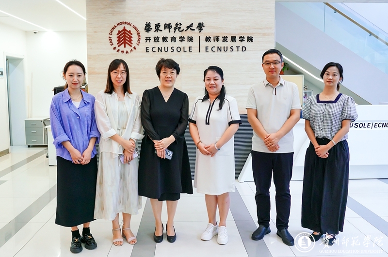 与华东师范大学开放教育学院、教师发展学院院长闫寒冰(左三)等合影留念