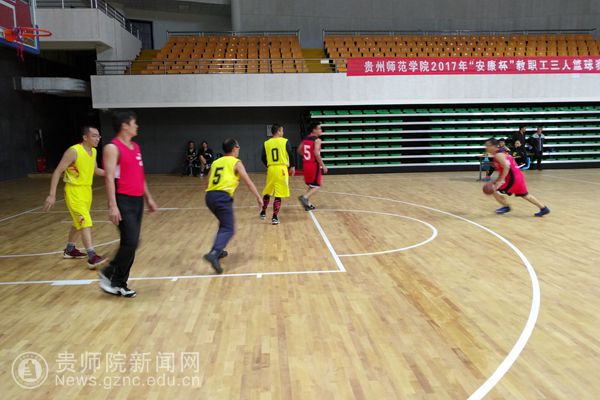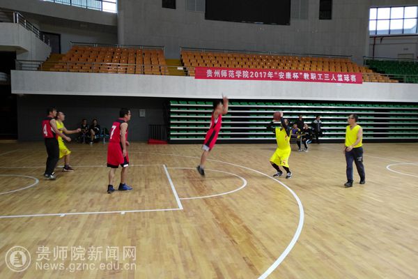 本网讯 10月16日下午,由校工会主办、体育学院承办的2017年“安康杯”教职工三人篮球赛在体育馆拉开序幕,来自学院、机关的18支队伍分组展开角逐。