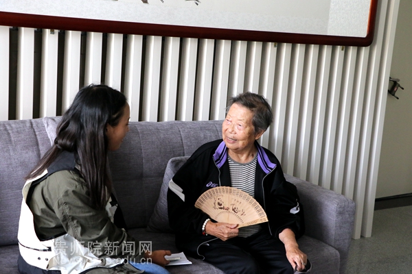 家住甲秀楼附近的老教师陶仁华今年85岁高龄,精气神十足的她作为学校活动积极分子,只要是有离退休老师参加的活动她都参与其中,她用了“很好”两个字高度概括了参加合唱队的所有感想,她乐呵呵的说“年纪大了,老有所乐、老有所学,来参加这个活动还能跟老师们谈谈心,是很高兴的,又因为我很喜欢唱歌、喜欢学校。”