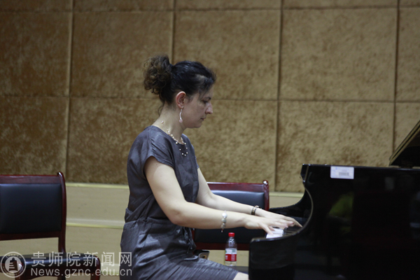 Ruzha Semova教授首先聆听学生的演奏并针对演奏的一些问题,如音乐节奏怎样更好掌握,手型的要求,手指触键的力度和感觉,怎样进行踏板的使用等,提出了良好的解决方案。在讲座最后Ruzha Semova教授演奏了巴赫玛尼诺夫的练习曲,演奏技巧娴熟,配合着三角钢琴本身的特点,圆润饱满的音色,以及触键灵活的手感,演奏如鱼得水,让乐曲增添了更丰富优美的内涵。