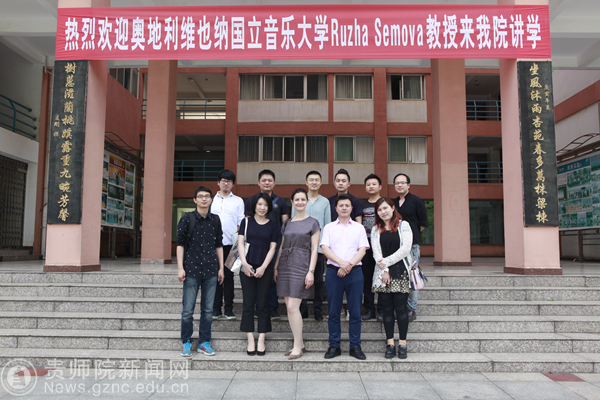 本网讯 6月1日下午,艺术学院特邀维也纳国立音乐大学Ruzha Semova教授来校讲学。Ruzha Semova教授在逸夫楼六楼音乐厅为艺术学院音乐学专业的学生带来了一场精彩的钢琴讲座。讲座伊始,马关辉向学生详细介绍了Ruzha Semova教授,著名小提琴家廖昊月担任翻译。