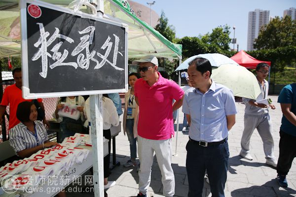 石培新到检录处查看工作