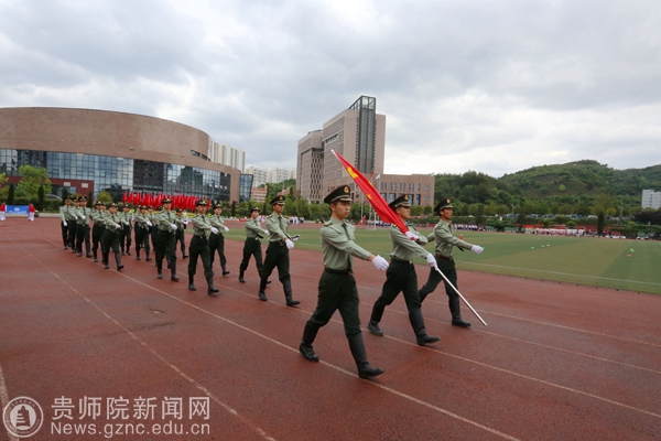 本网讯 5月11日下午4点整,伟德官网在运动场上举行了第五届体育节开幕式彩排。国旗班、红旗队、各学院方队、裁判员代表队、体育文艺表演团队参加了本次彩排。体育学院院长黄伟明主持并指导了本次彩排。校领导令狐荣锋观看了此次彩排。