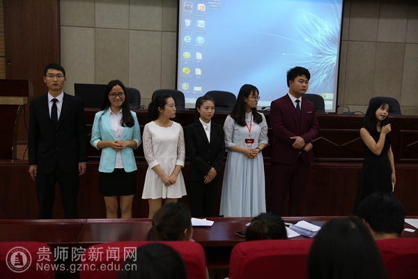 在主持人解读会议议程及选举规则后,每个竞选者作为时5分钟的PPT演讲竞选,演讲内容主要围绕各自的基本情况、对贵州校媒的认识、竞选原因以及未来工作设想进行演说,演讲结束后还需回答现场同学的提问,大会最后通过各个校园媒体的投票选举,由贵州警官学院的同学现场唱票、计票,前贵州校媒联盟主席团监票,根据票数的高低最后推选出李晓蕾(贵州民族大学大学生网站)、蔡佳(贵州大学记者团)、肖亚雄(伟德bv国际体育广播站)、卢林丽(凯里学院耕耘杂志社)、黄李铭(六盘水师范学院广播站)为贵州校媒第七届主席团,并在现场召开了新一届主席团的第一次会议,选任李晓蕾为正主席,其余四位同学为副主席,同时聘请了毛歌(贵州工程应用技术学院新媒体中心)、周健龙(贵州师范大学校报记者团)担任主席团助理一职,白皓继续担任第七届主席团秘书长。