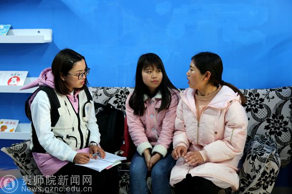 采访服务队代表李忠艳、顾果同学