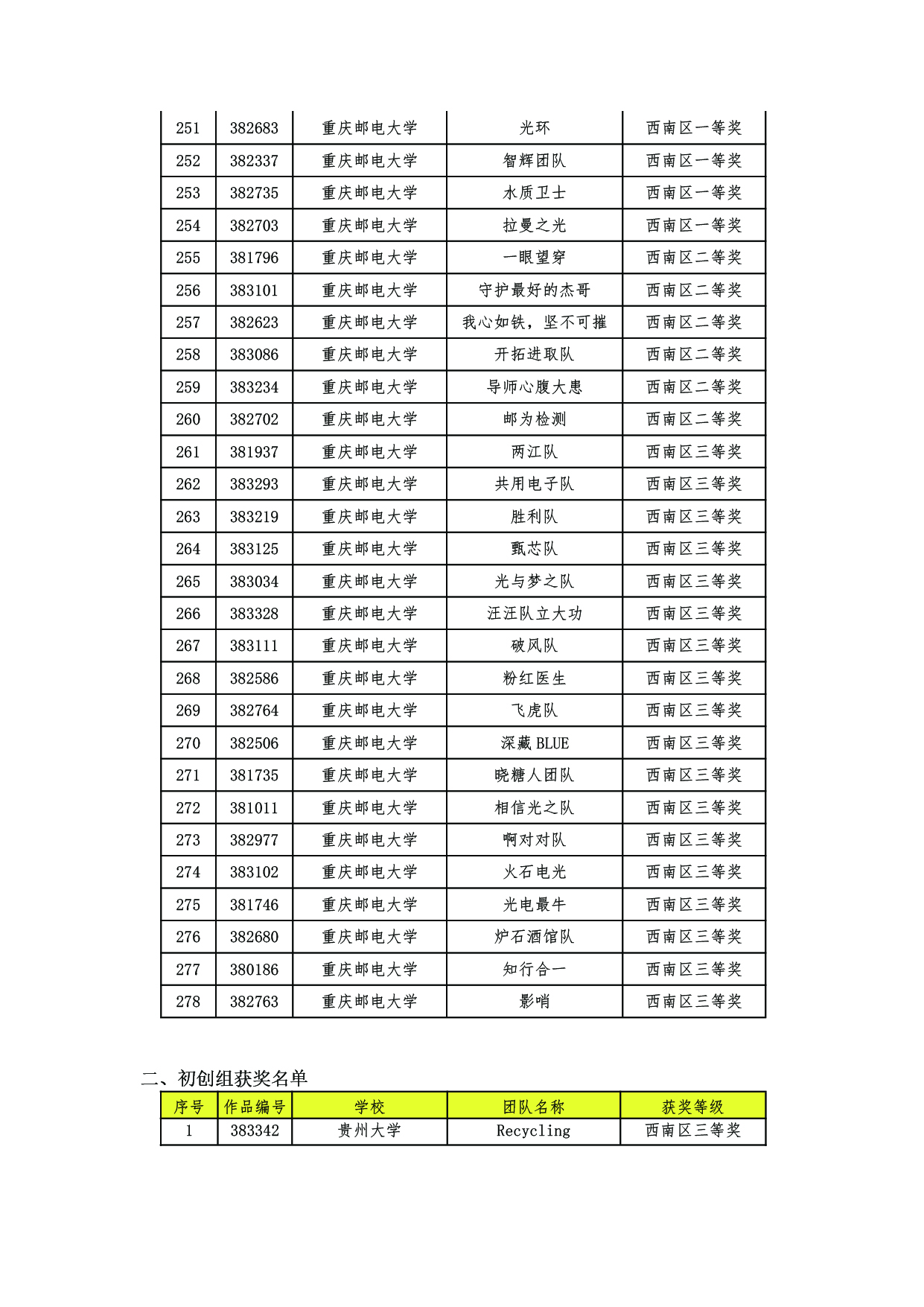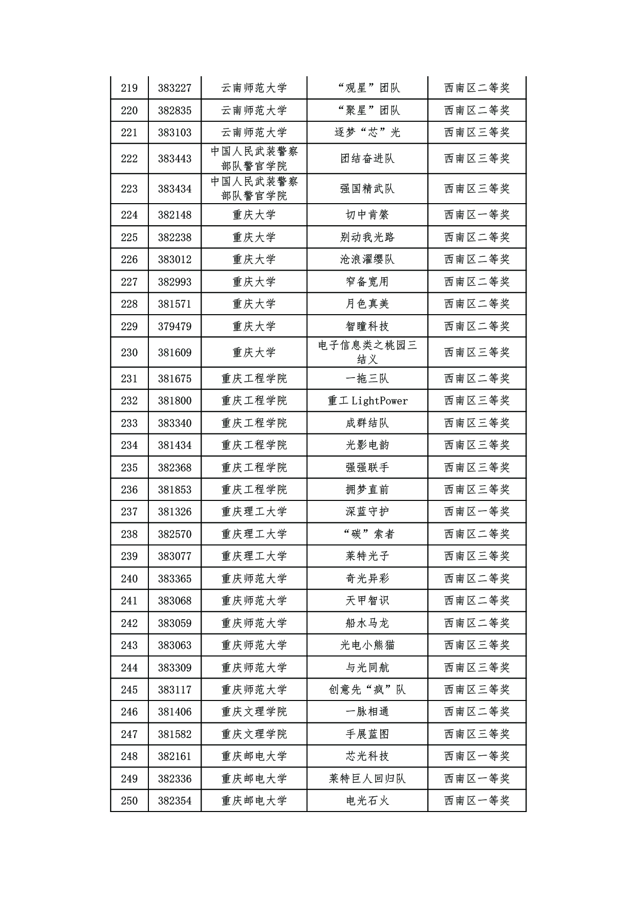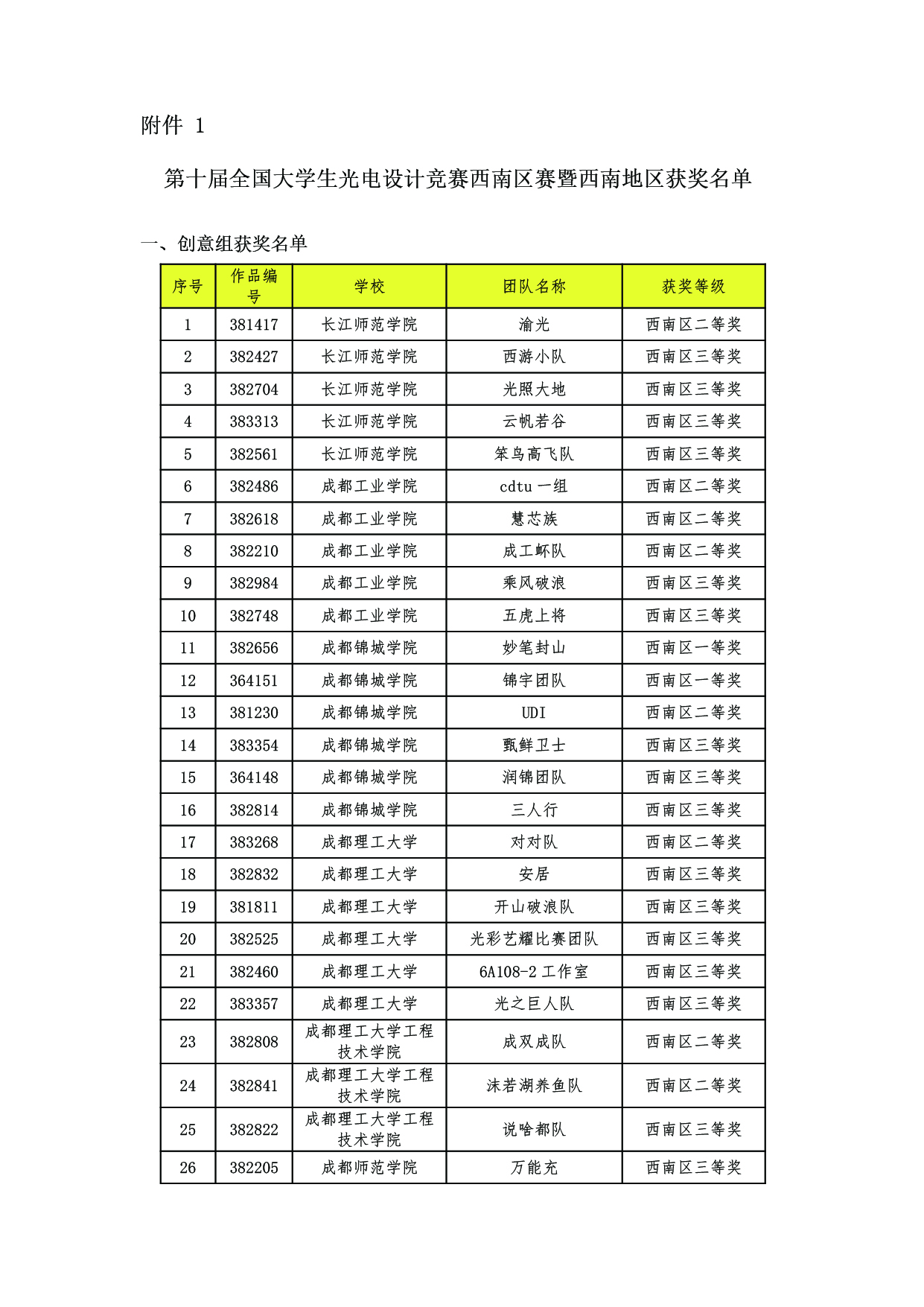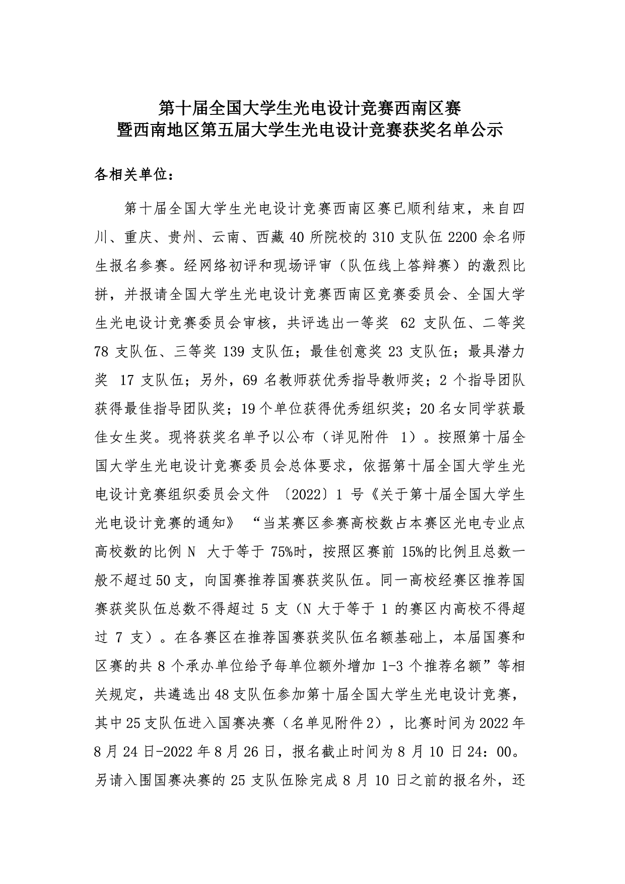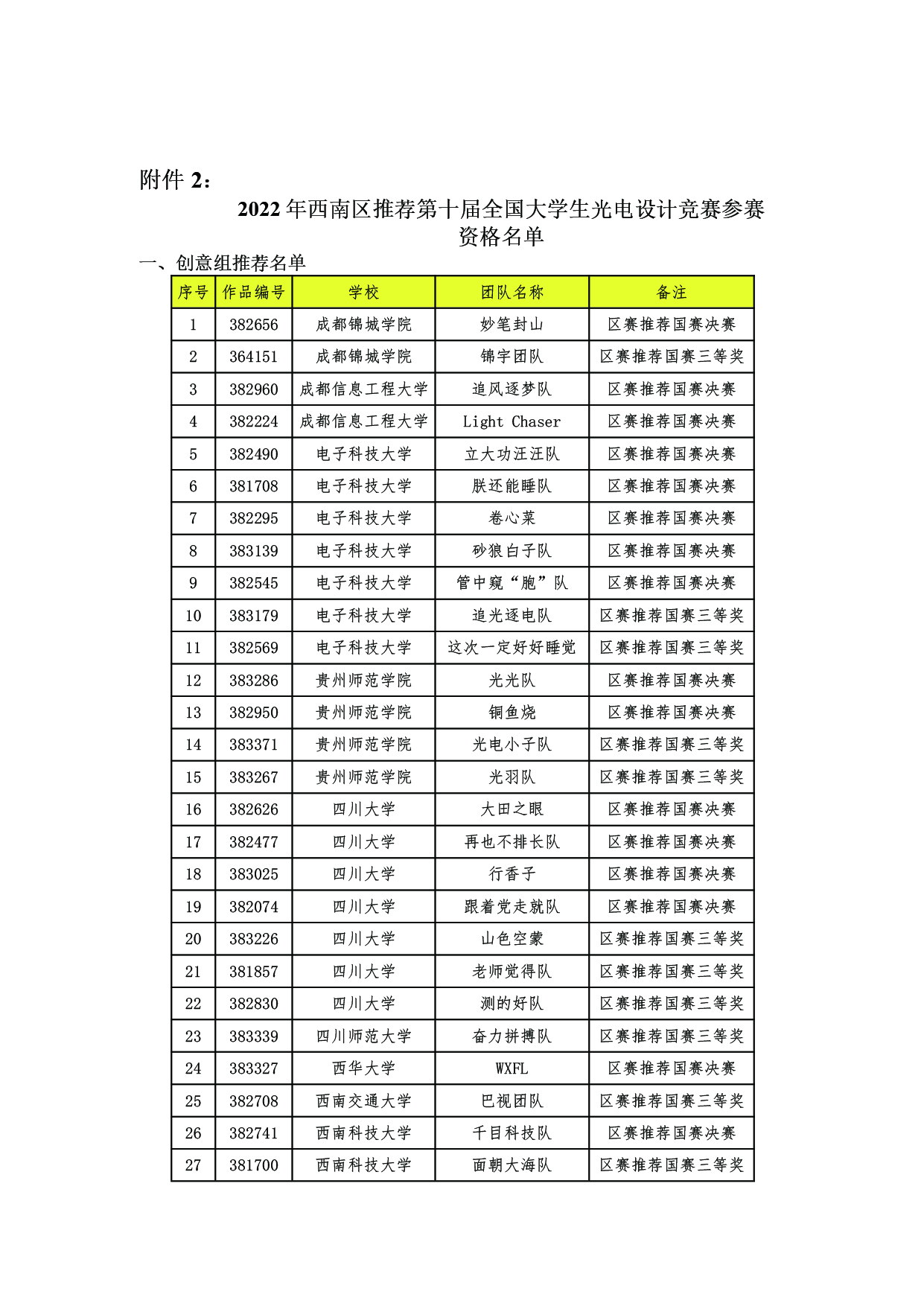 第十届全国大学生光电设计竞赛西南区赛获奖名单及入围国赛公布.pdf
