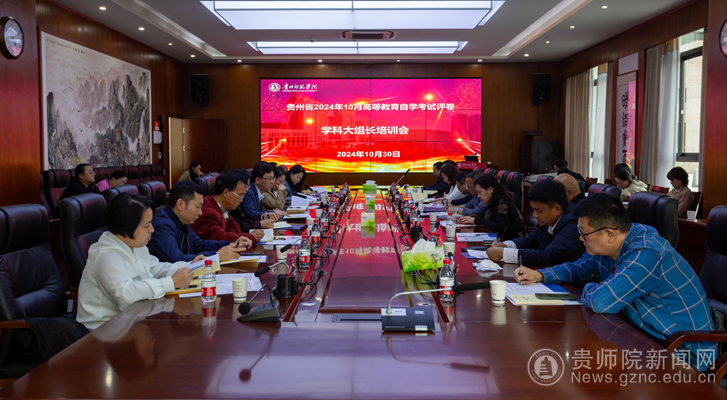 本网讯 10月30日下午,贵州省2024年10月高等教育自学考试评卷试卷切割暨学科大组长培训会在伟德官网信息楼二楼会议室召开。校党委委员、副校长潘运,省招生考试院自考处处长张果出席会议,校评卷基地办公室副主任、继续教育学院副院长何荣,贵州大学、贵州师范大学、贵州医科大学、伟德bv国际体育评卷学科大组长,深圳海云天科技股份有限公司负责人参加会议。会议由校评卷基地办公室副主任、继续教育学院直属党支部书记韦丹主持。