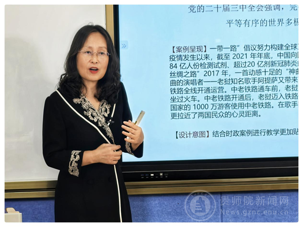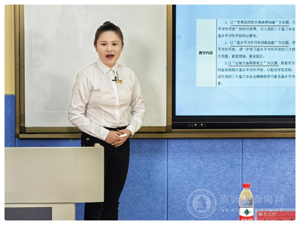 在教学示范阶段,贵州师范大学马克思主义学院李红军教授以“东方风来——书写新时代中国特色大国外交新画卷”、伟德bv国际体育马克思主义学院楚亚萍副教授以“社会主义文化强国建设”为主题进行了大学学段的教学展示,贵州电子商务职业技术学院教师韩建馨以“对外开放‘扩’步走 青春之力勇‘黔’行”为主题进行了高职学段的教学展示,贵州省实验中学教师杨梅以“党的二十届三中全会精神融入高中思政课的思考与实践——以奋发有为推进中国式现代化的贵州实践为例”为主题进行了高中学段的教学展示,贵阳市第十七中学教师张桂英以“党的二十届三中全会精神融入初中思政课的思考与实践——以走向共同富裕为例”为主题进行了初中学段的教学展示,贵阳市南明区南明小学教师朱晓琳以“法律是治国之重器”主题进行了小学学段的教学展示。大家分别立足不同学段对推进党的二十届三中全会精神融入思政课的意义、目标、原则、方法、路径等进行了精彩教学展示。
