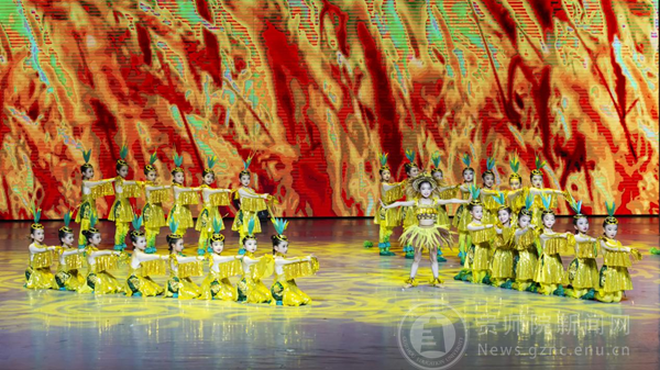 第三篇章为“满红•溢彩”,本章节节目精彩纷呈,集中展示了学院近期创作的优秀舞蹈剧目,包含《挽歌》《茉莉芬芳》《丹寨凤鸣》《稻浪》《田间斗笠》《阳光下的麦盖提》等,精彩的演出使得观众的掌声久久未熄。值得一提的是,由舞蹈系教师编舞并指导排练、贵阳市小学生舞蹈团的孩子们生动演绎的《稻浪》为本次演出增添了难忘的快乐童趣,该节目也是伟德bv国际体育“大手牵小手”舞蹈美育进校园校级教学成果奖培育阶段性成果。