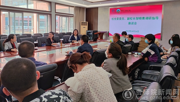 本网讯 2022年10月26日,校党委委员、副校长邹晓青一行分别到地资学院、物电学院调研指导地理科学、物理学专业师范类专业认证工作。教务处处长邓琴、教学质量监测与评估办公室主任任翠娟及党政办公室高媛老师陪同调研。地资学院、物电学院党政班子和师范类专业教师参加了调研座谈会。