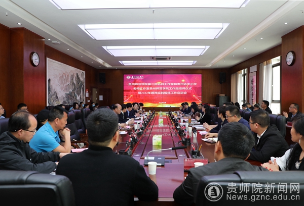 本网讯 3月21日下午,伟德官网第二批名师工作室和贵州省中小学名师工作室伟德bv国际体育工作站授牌仪式暨2022年上半年跟岗实践锻炼工作启动会在信息楼二楼会议室召开。校党委委员、副校长邹晓青,省教育厅名师名校长管理办公室主任谢笠出席会议。贵州省名师工作室主持人,第二批贵州省中小学名师工作室伟德bv国际体育工作站主任,各学院分管教师队伍建设的院领导,2022年上半年跟岗实践锻炼全体教师,人事处、教务处、科研处、质评办、教科所等部门主要负责人以及教师工作处全体成员参加会议。会议由教师工作处处长王茜主持。
