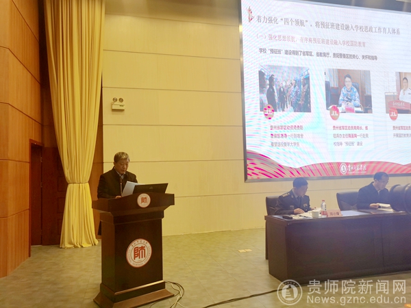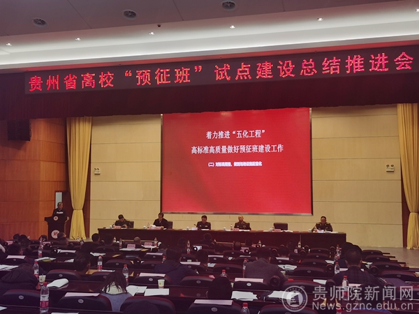 本网讯 12月10日,贵州省高校“预征班”试点建设总结推进会在贵州师范大学召开,全省各市州征兵办、75所高校征兵工作站相关负责人齐聚贵阳,通过现场观摩、经验交流、制度研讨等方式,总结推进高校“预征班”建设。贵州省政府副秘书长张乾飞、省军区动员局局长兼省征兵办公室主任隋圣陶出席会议,并总结部署下一步工作。会议由贵州省教育厅副厅长战勇主持,伟德官网是全省6所预征班建设试点高校之一,由伟德官网副校长余维祥代表学校进行工作汇报。