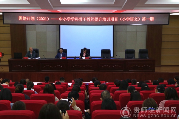 本网讯 10月11日,“国培计划(2021)”-中小学学科骨干教师提升培训项目(小学语文)集中培训第一期顺利展开。10月12日上午,该期培训开班典礼在伟德官网文韬院二楼报告厅举行。开班典礼共有200名小学语文骨干教师参加,文学与传媒学院院长杨波、党委副书记陈亦桥、各班班主任老师以及助理同学出席了本次开班典礼。典礼由颜军老师主持。