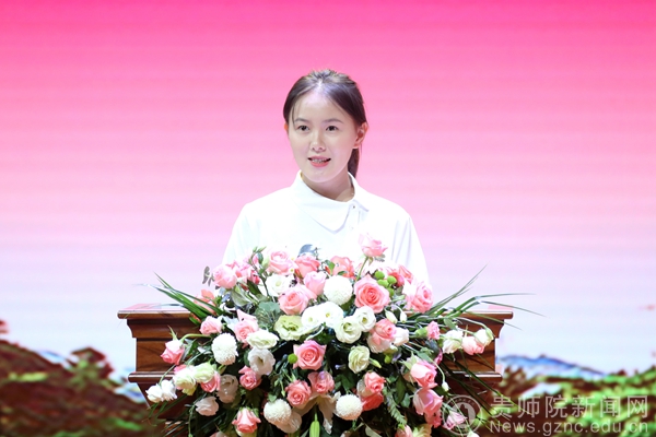 教师代表数学与大数据学院左羽教授,获奖教师代表文学与传媒学院郑颖老师,学生代表生物科学学院学生陈子纯同学依次作了发言。