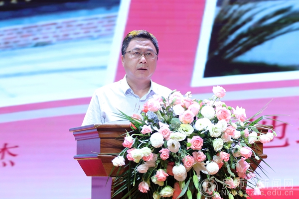 石培新围绕“初心”“担当”“传承”“祝福”四个关键词作了讲话,希望广大教师赓续百年初心、担当育人使命,力争做仁师、做德师、做智师,既当“教书匠”,又做“大先生”,成为学生为学、为事、为人的示范,引领和帮助学生“扣好人生第一粒扣子”。