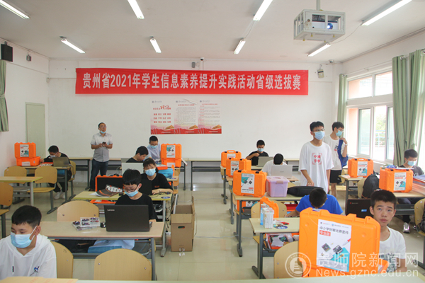 贵州省电教馆馆长崔华代表教育厅讲话,他指出国家正在加快实施教育信息化2.0行动计划,以教育信息化全面支撑和引领教育现代化。为全面建设社会主义现代化国家、实现第二个百年奋斗目标提供坚实的人才和智力支撑。本次活动旨在为全省广大师生搭建一个拓展视野、分享智慧、展示风采的舞台。相比往年,今年的活动呈现出三个方面的特点:一是活动名称更应景。更加突出信息素养提升这一主题,更加注重培养学生科技创新精神和实践能力。二是参赛人员更广泛。参加本次现场赛的学生涵盖小学、初中、高中(含中职),总人数创历年新高,这在当前疫情防控的背景下,更难能可贵,凸显了各地对这项工作的高度重视以及广大学生会用、乐用、善用信息技术进行学习的常态。三是活动形式更多元。本次选拔赛含创客、人工智能、机器人等五个项目,大赛内容相比往年更加丰富。他指出组织竞赛是形式,培养学生是核心,此次选拔赛不仅是一场比赛,更是一次展示交流学习的机会。希望通过比赛,让参赛学生展示自我、分享体会、收获经验、引发思考、推动工作。希望同学们发扬拼搏精神、凝聚团队力量,赛出风格、赛出水平,并通过比赛分享心得、结下友谊。各位指导老师要以本次活动为载体,充分发挥参赛选手的示范引领作用,激发更多学生参与活动的积极性,进一步扩大赛事的覆盖面和影响力。