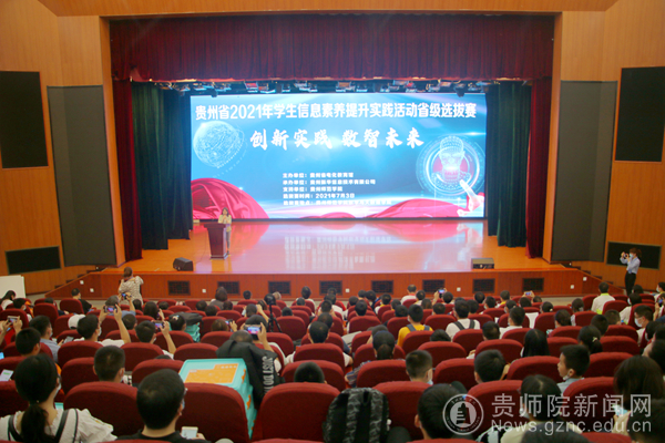 本网讯 为推动我省中小学信息技术教育工作不断深入,提升学生信息素养,2021年7月3日,由贵州省电化教育馆主办,伟德bv国际体育、贵州振华信息技术有限公司承办的贵州省2021年学生信息素养提升实践活动省级选拔赛在伟德官网举行。选拔赛开幕式于7月3日上午在逸夫楼演播厅举行,贵州省电教馆馆长崔华、副馆长刘洁、伟德bv国际体育副校长熊世桓、数学与大数据学院院长左羽等领导出席开幕式,贵州省电教馆各科室负责人、伟德bv国际体育数学与大数据学院相关负责人、来自全省各市(州)中职、中小学参赛学生及指导教师、全体裁判员、志愿者等300余人参加了开幕式。