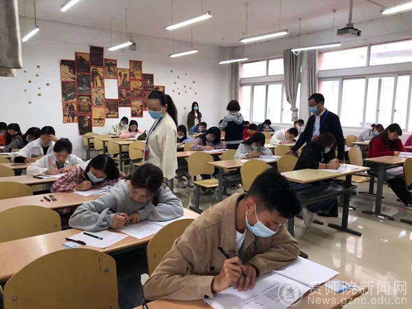 考试当天,熊世桓在邓琴的陪同下对考场进行巡查。整个考试规范有序、纪律严明,监考教师与学生均按章遵照执行。考试结束后,考务办组织相关老师集中阅卷。