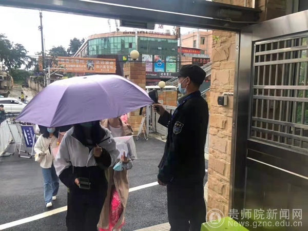 进入考区,佩戴口罩,排队测量体温。