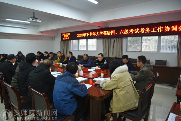 为确保2020年度大学英语四六级考试顺利收官,教务处分别于12月10日在文韬苑教务处会议室召开考务工作协调会,相关职能部门、高新派出所负责人和二级学院基层党委书记参加会议并与考点主考签订工作责任书;在12月11日召开考务工作培训会。熊世桓相继出席会议并提出四点要求:一是认识到位,确保安全;二是统筹协调,落实责任;三是各司其职,配合到位;四是压实责任,落实到位。教务处副处长刘宪帮分别通报了本次考试的基本情况,传达教育部、省招生考试院相关文件精神,对疫情防控、考务管理、人员选聘、环境整治、安全保密、后勤保障、网络监督等工作作安排,特别强调疫情防控的重要性,要求各部门、学院严格开展和执行防疫防控工作。要求全体考务工作人员高度重视,增强时间观念,严明纪律责任,切实做好考务工作。教务处曹发亮组织学习《全国大学英语四、六级考试笔试监考员操作指南》,对考务工作职责进行详细解读。全体考务人员签订工作责任书。