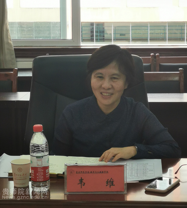 会上韦维作重要指导。首先对学院成功通过教育部师范类专业第二级认证、数学与应用数学专业贵州省2019年本科专业评估中获得全省第二名的优异成绩表示祝贺,对学院学科专业建设给予了肯定。就一流学科(数学)建设她提了三个意见:一是要有目标、有规划搭建更好的学科建设平台;二是专业教师要拧成一团,有组织性的参加科研建设;三是从人才培养、科学建设、社会服务、国际合作交流等方面做有传承的专业学科。