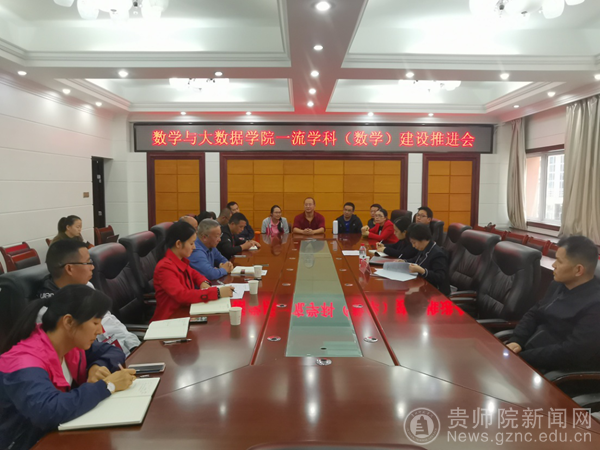 本网讯 为更好推进学院一流学科(数学)建设工作,根据学院工作安排,9月28日,在宁静楼第九会议室组织召开“一流学科”(数学)建设工作推进会。校长韦维出席会议,学院院长左羽、副院长汪少祖及学科团队全体教师参加,学科负责人、数学与大数据学院党委书记李艳琴主持会议。
