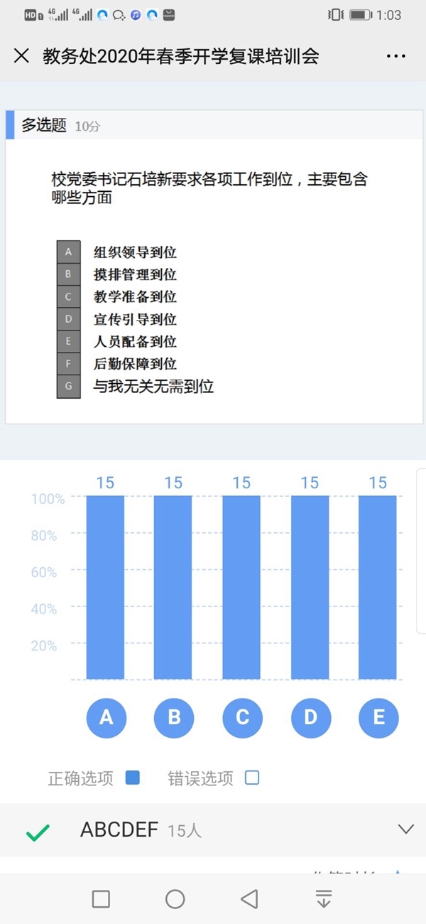 本网讯 齐心协力抗战疫,终迎芳菲四月天,盼得学子归来时。按照教育部、教育厅的相关文件,伟德官网全力备战完成了前期的防控和开学复课的准备工作。在疫情防控形势持续向好、学校日常教学秩序稳固运行的态势下,教务处于4月27日召开了2020年春季开学复课培训会,旨在迎接复课的关键时期,更要保持头脑清醒,慎终如始,再接再厉、善作善成。会议充分运用雨课堂,线上线下相结合的形式进行。副校长熊世桓到会指导,全体教务人参会,副处长任翠娟主持会议。会议共分三个议程。一是教务处2020年春季开学复课培训会;二是学习《贵州省高校教师师德失范行为处理办法(试行)文件》;三是再次梳理复课筹备、毕业季等重点教学工作。