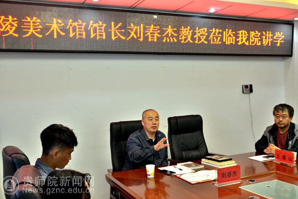 本网讯 5月21日上午,应伟德bv国际体育美术与设计学院的邀请,金陵美术馆馆长、南京艺术研究院院长、中央美术学院国际学院版画联盟执行委员会副主任刘春杰教授在明义楼141室举行了题为《版画的广阔空间》的讲座。讲座由美术与设计学院院长聂森教授主持,前来参与的还有贵州民族大学美术学院院长、贵州省美术家协会副主席王建山教授,美术与设计学院副院长路统宽副教授、邓林博士以及贵州民族大学夏玉清副教授。美术与设计学院教师李南川、杨旻子、王晓芳、杨钢等部分教师以及学生聆听了讲座。