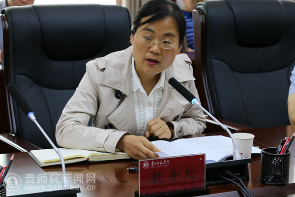 会议伊始,教务处副处长任翠娟就教务运行,毕业班工作,教学管理,教材工作,专业建设和教学质量工作,实验教学、实验室建设与管理,实践教学工作,教室管理工作,青岛大学交换生工作,国家级考试等十个方面通报和安排期中教学重点工作。