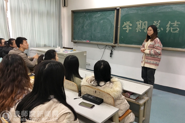 会议伊始,金泽坤与同学们分享了自己赴青大访学一学期以来的经历和学习心得,幽默风趣的语言使会议气氛活跃了许多。代慢慢针对即将开始的期末考试强调了积极备考和诚信考试的重要性,并代表大家发言道:“我们大家远赴齐鲁大地访学,代表着贵州师院的形象,作为学期学习成果的检验,本次期末考试定要积极备考,以优异的成绩展现师院学子的良好精神风貌”。