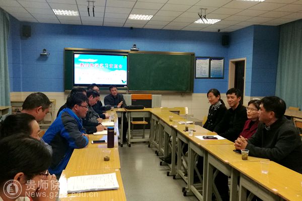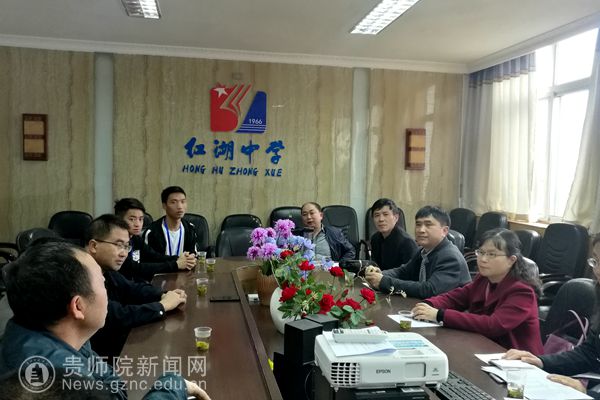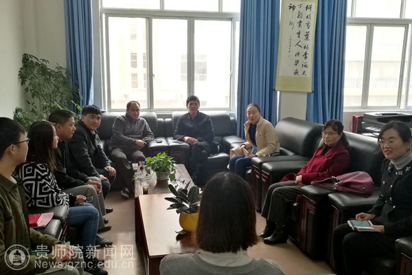 郭文一行在平坝三中听实习生汇报实习情况