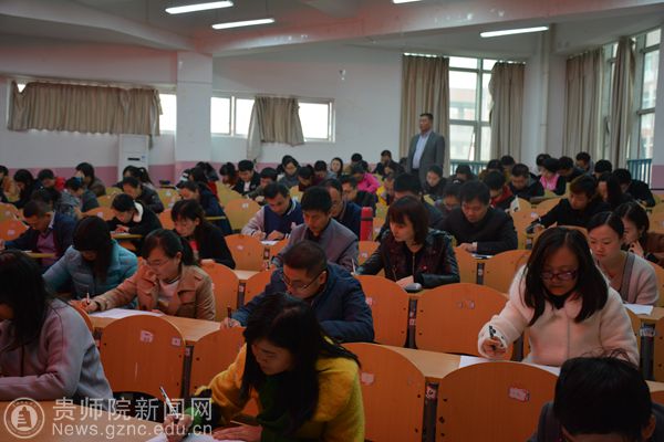 本次测试采取学校集中测试和各学院、部门同一时间分散测试相结合方式进行。校集中测试考场设在宁静楼151教室,由学院教师代表、各部门教师代表110人参加。