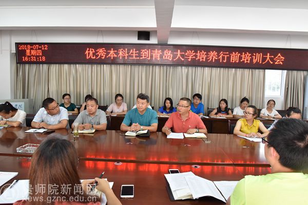 刘宪帮宣读了《2018年选拔优秀本科生到青岛大学培养学习实施方案》和《关于选派代慢慢等21名同学到青岛大学培养学习的通知》(贵师院党政办发〔2018〕16号)相关文件,就选拔学生赴青岛大学培养学习作了动员讲话,希望同学们参照伟德官网本科人才培养方案,从个人兴趣和发展规划出发,合理、科学制定个性化的学习计划,在交流学习期间不断充实和提高自己,并要求同学们严格遵守双方学校的规章制度和纪律,用心体验第二校园生活,努力学习,刻苦钻研,学成归来。