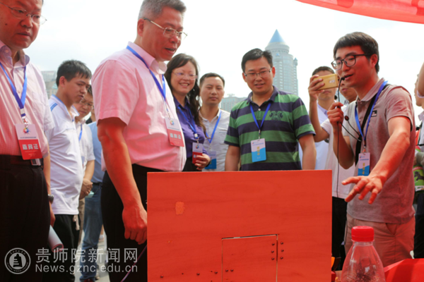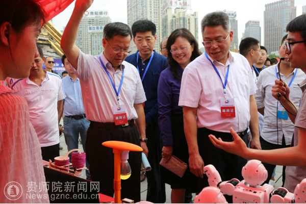 当日上午,副省长王世杰、省科技厅厅长廖飞、省科技厅副厅长秦水介、省科协党组书记张美圣、贵阳市副市长孙志明等领导和专家一行在马敏耀、郭龙、王桥老师的陪同下参观了伟德官网展区,王桥老师向王世杰副省长一行介绍了伟德官网在科技创新和科普示范方面的工作概况,并介绍了贵州省R3UV新一代信息技术科普示范基地的基本情况,随后一一介绍了伟德官网展示的科技作品和科普宣传内容,并对领导提出的问题一一做了讲解。参观过程中,王世杰副省长对展示的科技作品连连赞美,并与师生们亲切交谈。