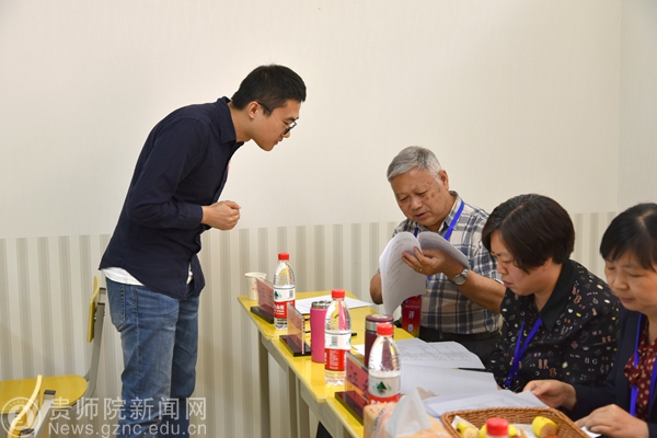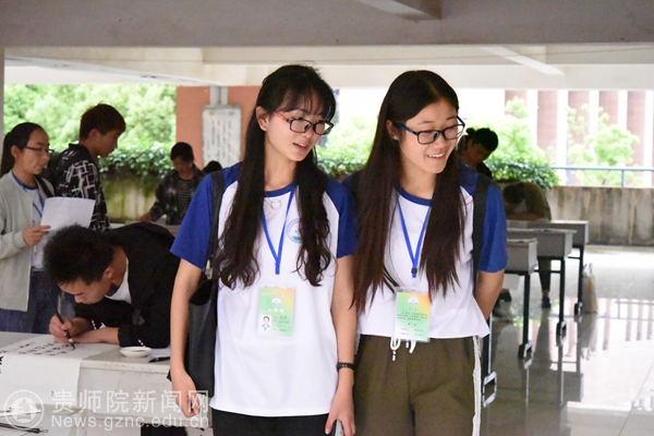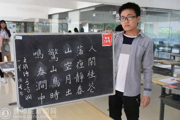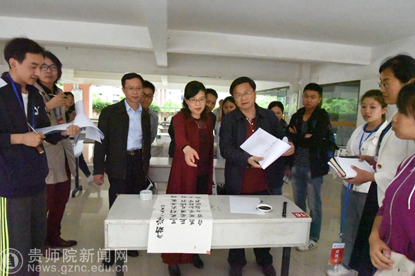 郭文在“三字一话”比赛现场指导时强调:一是要充分发挥好教学名师的示范作用,请名家们为学生做专项培训指导;二是激励、动员广大的书法爱好者们积极踊跃的参加到学习的行列中,营造良好的学习氛围;三是要展现好优秀的师生作品,这是师院原创校园文化的重要内容。