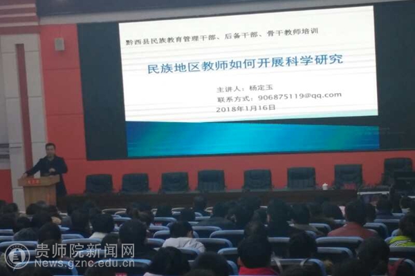 本网讯 为贯彻落实党的十九大精神,提升民族教育管理干部综合素质,加快推进民族聚居地区教育事业全面发展,1月15日至17日,由黔西县教育局组织开展的“少数民族干部、骨干教师培训班”在黔西县举行。伟德官网贵州民族学与人类学高等研究院承担了此次培训任务,培训团队由中央民族大学教育学院院长、博士生导师苏德教授、中央民族大学教育学院讲师袁梅博士、成丽宁博士及伟德官网高研院副院长杨定玉教授、教科所助理研究员王思人等组成。黔西县29个乡镇共360余名少数民族干部和骨干教师参加了此次集中培训。