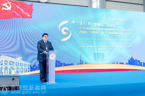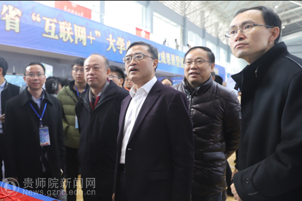 本网讯 1月6日,“建行杯”贵州省“互联网+”大学生创新创业成果展暨创新创业教育改革总结会、2018年“互联网+”大学生创新创业大赛启动仪式在贵州理工学院隆重举行。省人民政府副省长陈鸣明、省政府副秘书长周明勤、省教育厅厅长王凤友、省教育厅巡视员代其平、建行贵州省分行副行长陆雪涛及各高校主要领导参会。伟德官网校长郁钟铭、副校长令狐荣锋出席会议。伟德官网教务处处长、创新创业学院常务副院长熊世桓带领伟德官网创新创业教师代表、“互联网+”创新创业大赛获奖学生团队参加会议。
