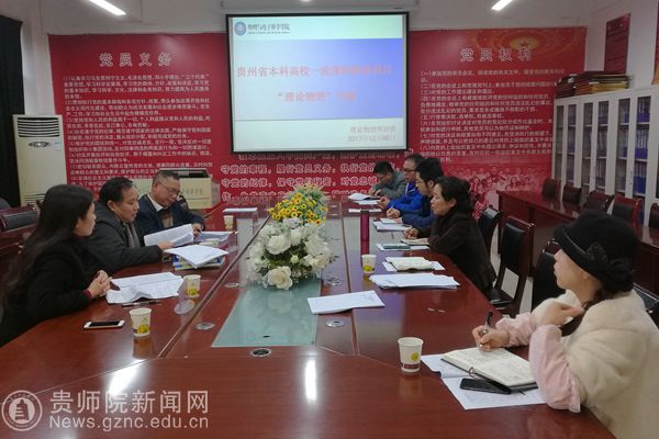 本网讯 12月6日下午,在物电学院会议室召开贵州省本科高校一流课程建设项目“理论物理”开题报告会。会议邀请了贵州大学隆正文教授、贵州师范大学宋晓书教授、伟德bv国际体育令狐荣锋教授和教务处熊世桓教授作为专家组成员,参会的还有教学质量管理科科谭义群老师,项目组成员陈德良、刘高福、李振宇、闻水国、吴永刚等。会议由项目负责人王平瑞教授主持。