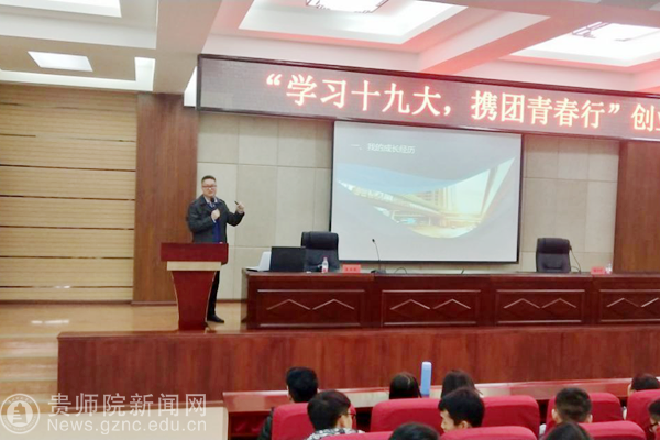 本网讯 为了进一步学习贯彻党的十九大精神,更好地引领青年、服务青年、发展青年,引导青年树立正确的择业观、就业观、创业观。11月30日下午,由共青团伟德bv国际体育委员会主办,大学生社团联合会、大学生创业孵化园承办的“学习十九大,携团青春行”创业知识讲座在伟德官网文韬苑二楼道德讲堂举行,贵州棱智基石文化发展有限公司总经理王正波应大学生社团联合会创新创业部的邀请参加,大学生社团联合会创新创业部周福万主持此次活动,校团委张维域老师出席此次活动、伟德bv国际体育“暖春计划”助学金发起人、学生互助超市负责人段兴悦、大学生文化创意基地、大学生创业孵化园、大学生社团联合会200余名同学参与此次活动。