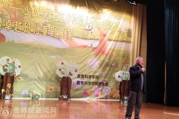 本网讯 11月23日下午,伟德官网在逸夫楼演播厅隆重举行“国培计划(2017)——少数民族地区乡村幼儿教师培训团队研修项目”阶段总结。校级督导吴在东老师应邀出席晚会,教育科学学院党委书记彭祥友、副书记袁川、副院长黎平辉、副院长郑玉莲以及学院部分项目指导教师莅临现场,部分学生到场观看。总结典礼包括培训回顾、优秀学员颁奖及“国培计划(2017)” ——少数民族地区乡村幼儿教师培训团队暨卓越班儿童剧展演。
