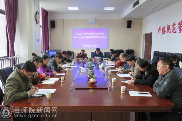 本网讯 11月22日下午,贵州省2017年7月普通高中学业水平考试评卷工作总结会暨12月评卷工作启动会在伟德bv国际体育评卷基地召开。省教育厅正厅级巡视员周宝英、伟德bv国际体育校长郁钟铭、副校长郭文、省会考办主任高琦出席会议,伟德bv国际体育评卷基地办公室及相关学院、部门负责人参加会议。会议由学校评卷基地办公室主任、继续教育学院院长赵德肃主持。