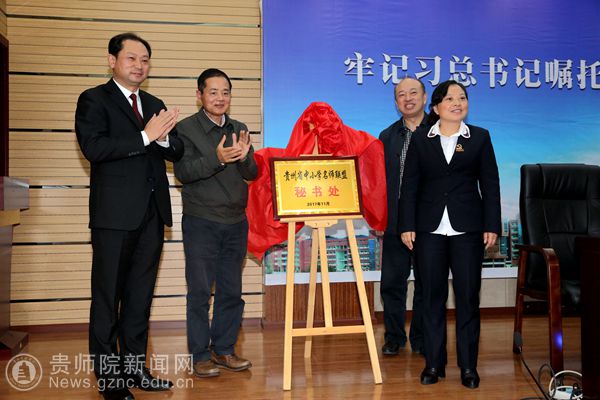 最后,潘建春、石培新、郁钟铭和黄俊琼共同为贵州省中小学名师联盟秘书处揭牌。