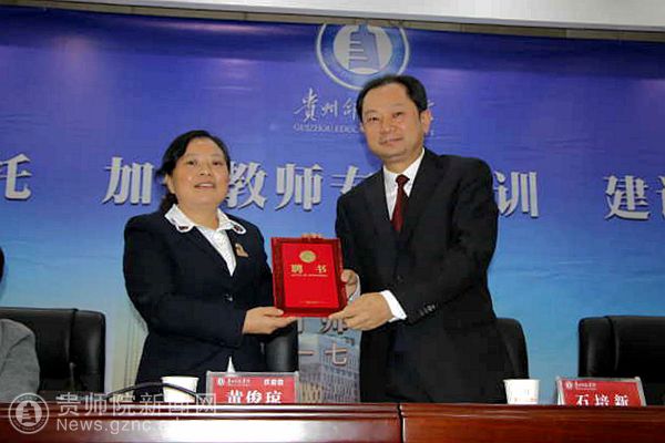 本网讯 11月14日下午,贵州省中小学名师联盟成立大会在伟德bv国际体育召开。贵州省教育厅副厅长级督学潘建春、省教育厅教师工作处处长蔡志坚、我省十九大代表、省乡村名师工作室主持人黄俊琼出席了成立大会。大会由贵州省名师(名校长)培养管理办公室主任、伟德bv国际体育教师工作处处长谢笠主持。