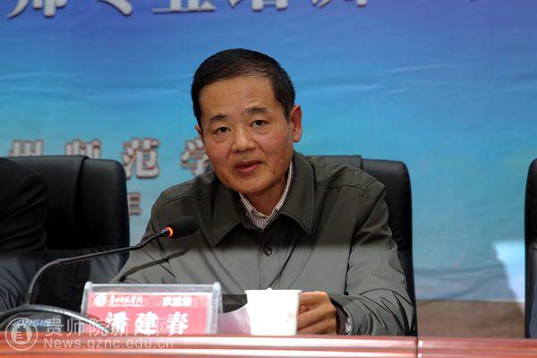 潘建春发表讲话。他认为,今天众位名师齐聚一堂,共话时代名师名校长的使命与担当,探讨名师名校长工作室永续发展方法与途径,本身对提升我省基础教育教学质量就具有深远意义。随后他就如何利用好贵州省中小学名师联盟这一载体谈了具体意见,希望通过贵州省中小学名师联盟能进一步完成我们作为名师名校长的使命,为我省中小学教师队伍建设,中小学教师专业培训,实现我省脱贫攻坚目标和教育扶贫作出新的贡献。