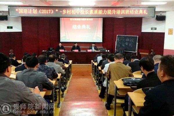 本网讯11月1日中午,“国培计划(2017)”—乡村初中校长素质能力提升班第一期结业仪式在宁静楼报告厅举行。继续教育学院党委副书记王刚、培训部主任蔡晶、班主任左欣和98位学员参加了结业仪式。结业仪式由左欣主持。