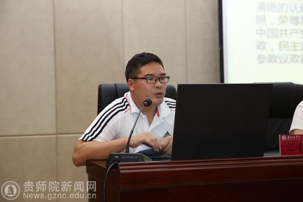 民盟支部代表曹月勇汇报学习成果