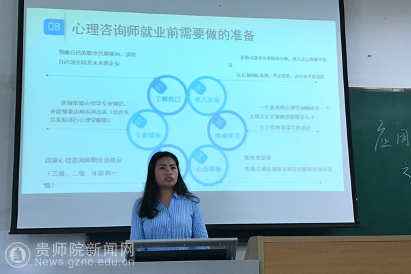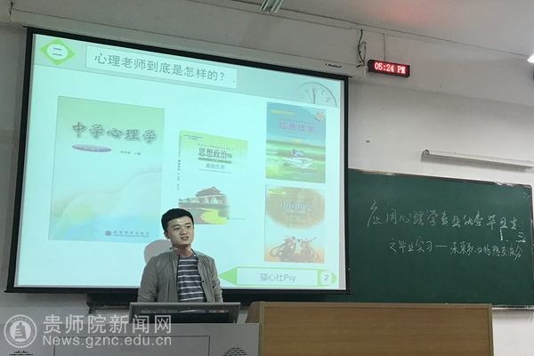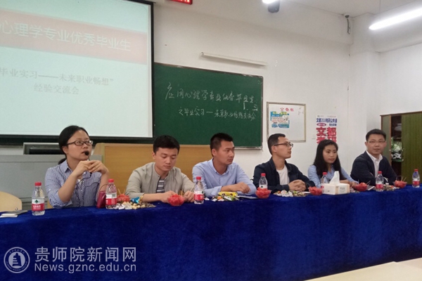 本网讯 5月21日,教育科学学院应用心理学专业在伟德官网逸夫楼303教室举行“毕业实习—未来职业畅想”经验交流会。会议由应用心理学专业教研室主任金欢欢主持,共邀请到现工作于贵州经贸职业技术学院、龙里县民族完全中学、贵州省兴义监狱、贵州师范大学和贵阳海之源心理咨询服务中心等单位的五名应用心理学专业优秀毕业生到场交流。