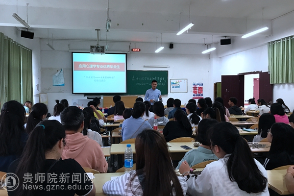 本次交流会是2018届毕业实习前培训的重要内容之一,旨在通过优秀毕业生的经验分享,为即将实习的14级在校生提供宝贵的实习和职业发展建议。来自贵州经贸职业技术学院的心理健康教师杨志芳就应用心理学专业的就业前景和心理学在大中专职业院校的应用现状作了全面的介绍,并结合自身的学习、实习和工作经历为到场的同学们分享了关于如何成为一名合格的心理健康教师的职业发展建议。来自龙里县民族完全中学的心理健康教师文永谋结合自身在中学创建心理咨询室和心理服务志愿者团队的经历,鼓励大家在实习过程中不断历练专业技能、积累经验,为职业发展做好准备。来自贵阳市海之源心理咨询服务中心的心理咨询师兼心理咨询培训项目负责人张琴就心理咨询的行业现状和发展前景、心理咨询过程中的常用技术、心理咨询工作可能面临的困难等话题,为同学们作了丰富生动的案例分享,并建议大家从了解自己、专业储备、资格储备、心态储备、收入准备和终身学习等几个方面,做好心理咨询的职业准备。来自贵州省兴义监狱的狱警江河根据自身的职业成长经历,分享了关于正确处理备考公务员与毕业实习的关系的宝贵经验,并建议大家要在毕业实习过程中练就一技之长,以应对未来职业发展的多种要求。来自贵州师范大学的硕士研究生戴隆农结合自身考研经历,为同学们全面介绍了考研的各项准备经验,并针对如何处理好考研与毕业实习的关系这一问题,提供了诚恳有效的建议。毕业生们一致认为,毕业实习是未来职业发展的必要环节,心理准备和专业技能储备是实习前的必备条件,并鼓励大家通过集中实习这一方式,尽可能多地学习和积累各种专业实践经验,在锻炼自我的同时,做好未来职业发展的规划。最后,毕业生们就在场同学们关心的实习和职业发展的其他问题进行了深入广泛的交流。