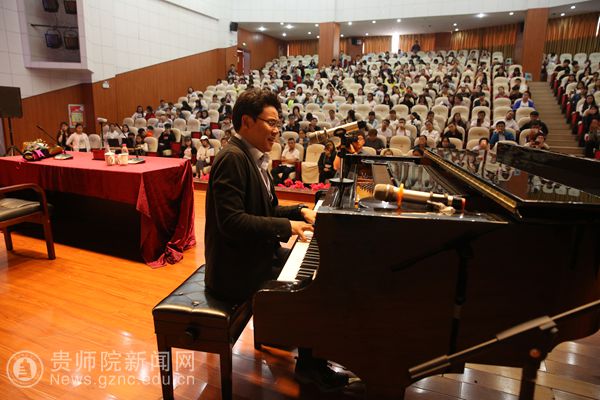 讲座伊始,杨阳就为在场听众讲诉音乐带给人益处:这门直通人心灵的艺术带给人无限的玄想和情感,陶冶情操、启迪心灵、抒发情感等,这一系列真实富有诗意的形容令在场的听众听得津津乐道。随后,杨阳教授还进行了现场示范,现场弹唱,在展现扎实专业功底的同时,带给在场领导、老师、同学们美的享受。优美的韵律伴随着节拍,让高雅艺术不知不觉地已经渗透进入了伟德官网校园文化之中。展示完毕后杨阳当即现场进行专业音乐知识的讲学,不浮夸造作的教学姿态以及有深度意义的内容,获得在座听众热烈的鼓掌声。