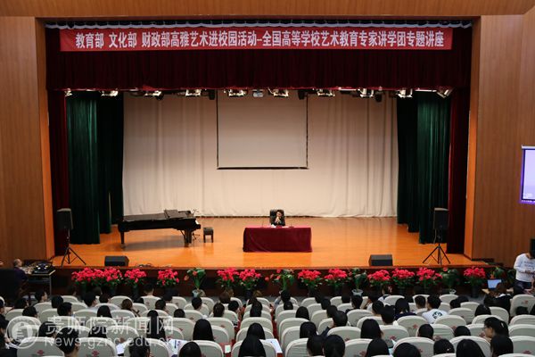 本网讯 根据教育部办公厅,文化部办公厅,财政部办公厅《关于开展2017年高雅艺术进校园活动的通知》和教育部体卫艺司《关于组织2017年艺术教育专家讲学团赴中西部地区高校讲学的通知》精神。5月9日下午,艺术教育专家讲学团杨阳教授在伟德官网逸夫楼演播厅开展了“高雅艺术进校园系列活动——艺术教育专家赴西部高校讲学活动”。伟德官网校长李存雄亲临此次讲座,本次讲座由校团委副书记傅小芳主持。